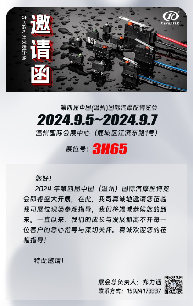 尊敬的客戶:您好!我們誠摯地邀請您參加即將在2024年9月5日至7日舉辦的第四屆中國(溫州)國際汽摩配博覽會。···